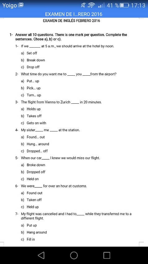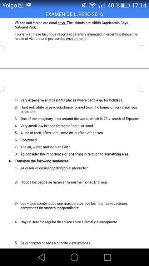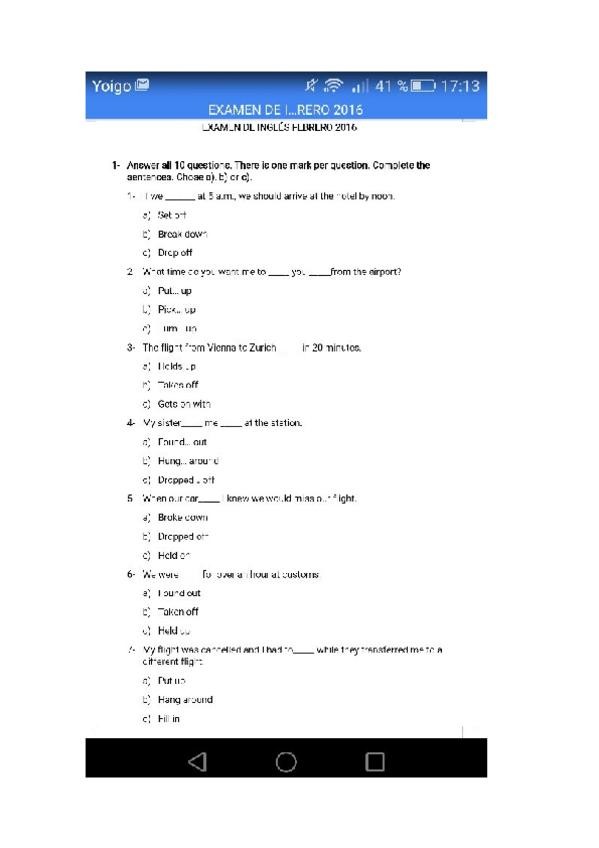 He publicado nuevos examenes de 1º Inglés Aplicado al Turismo I: EXAMEN 2016