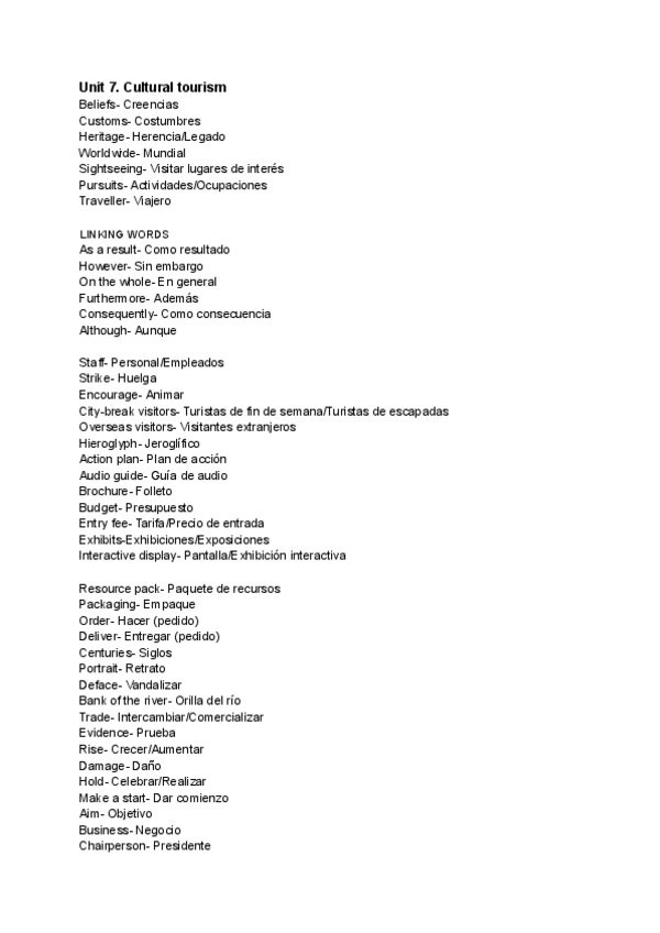 He publicado nuevos ejercicios de 2º Inglés Aplicado al Turismo II: Cultural-tourism.pdf
