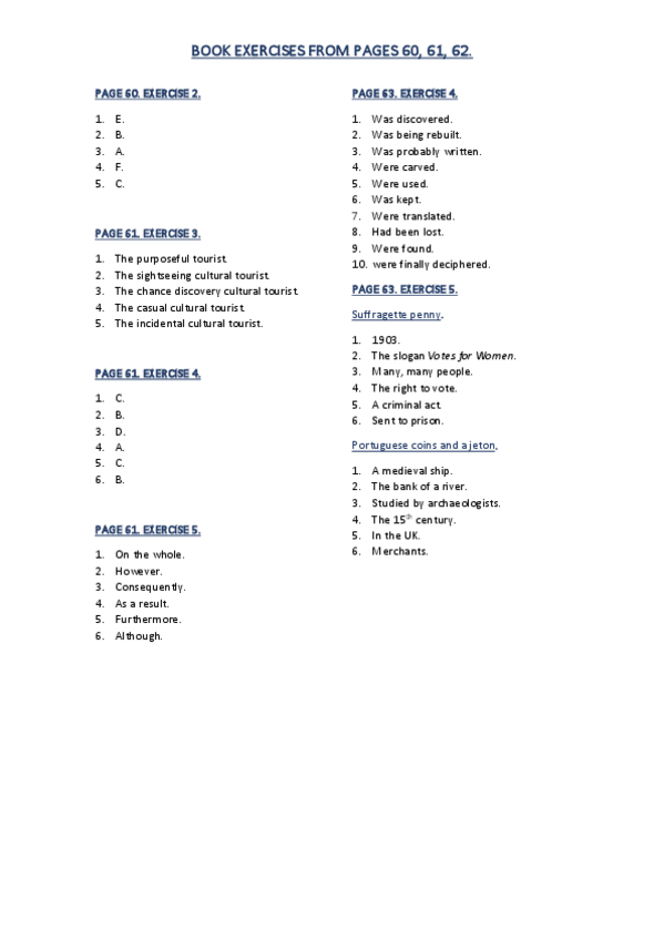 He publicado nuevos apuntes de 2º Inglés Aplicado al Turismo II: Solucionario ejercicios Tema 1 al 6