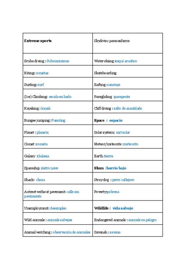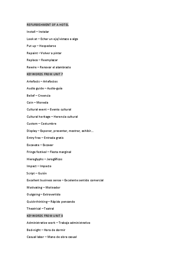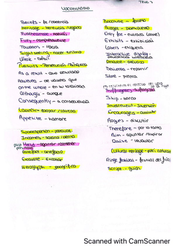 Todo el vocabulario necesario para el examen, sacado del libro y ppt
