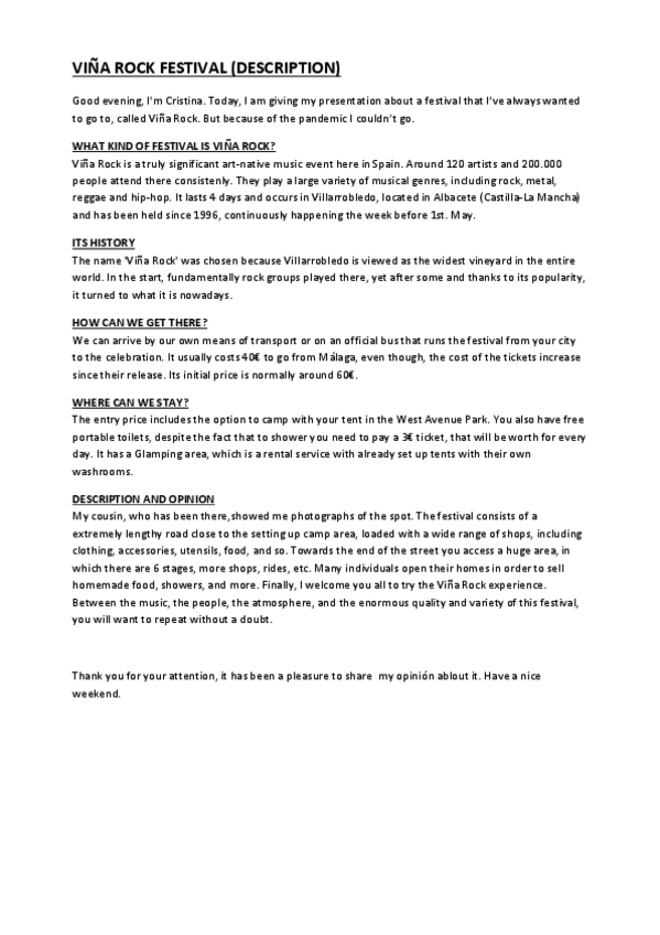 Presentación Describing a festival