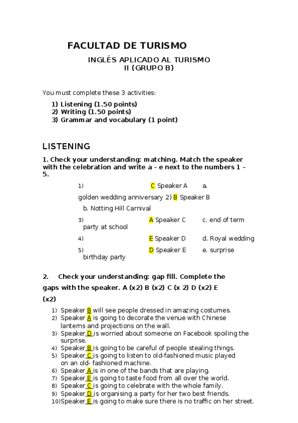 He publicado nuevos apuntes de 2º Inglés Aplicado al Turismo II: Ejercicios y Listenings HECHOS