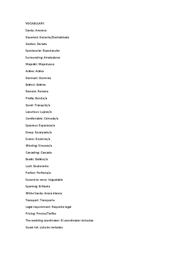 Todo el vocabulario necesario para el examen, sacado del libro y ppt