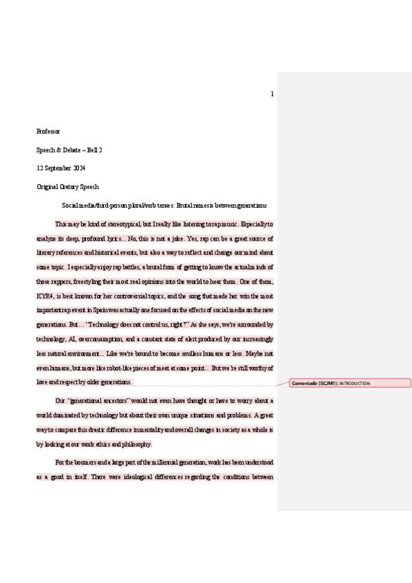 Discurso original redactado para la asignatura de Speech & Debate del Bachillerato Dual. Con un nivel C2 Proficiency, el texto analiza el impacto de la tecnología y las redes sociales en la Generación Z, utilizando una estructura retórica avanzada, refere