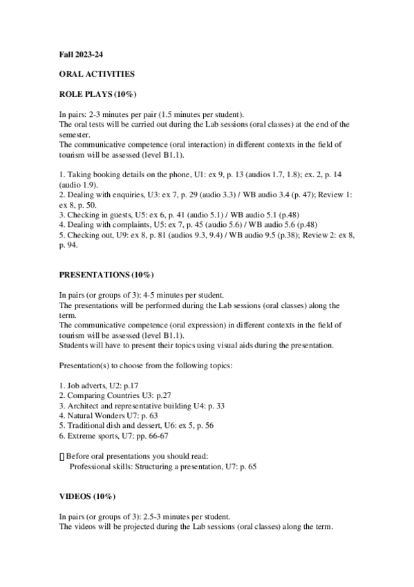 He publicado nuevos apuntes de 1º INGLES DEL TURISMO I: ORAL-and-WRITTEN-ACTIVITIES23-24.docx