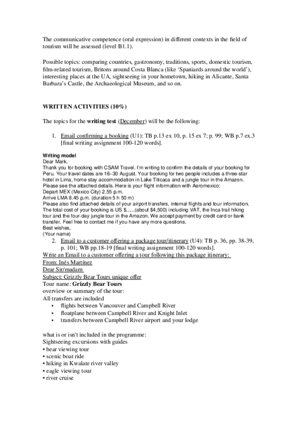 He publicado nuevos ejercicios de 1º INGLES DEL TURISMO I: Writing-Confirming-a-booking.pdf
