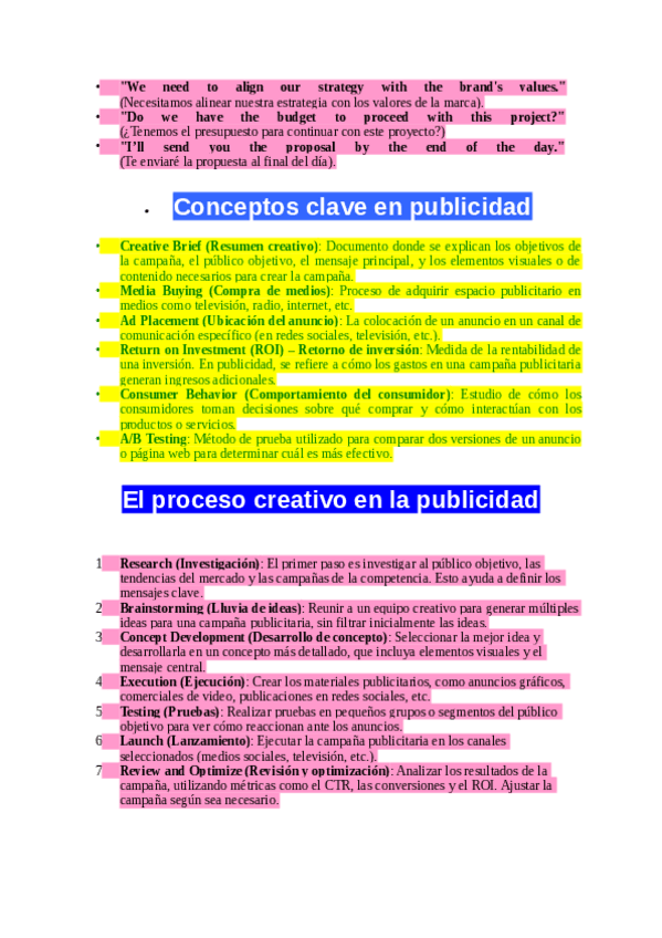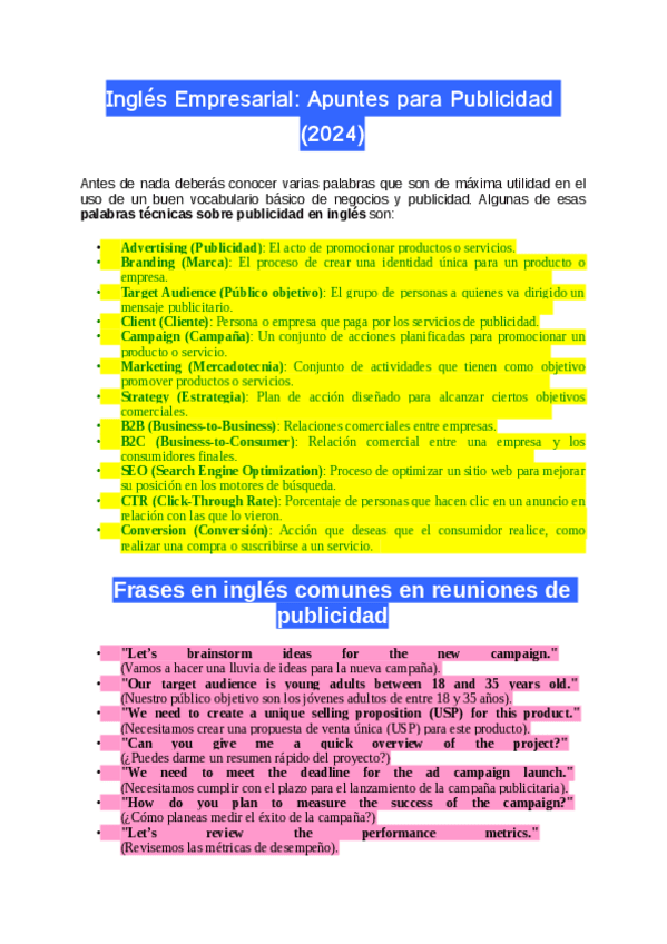 Te comparto estos apuntes de Inglés empresarial para tu grado de publicidad en el que podrás conocer palabras técnicas publicitarias, aprender frases en inglés y conocer un diálogo real en inglés en una reunión de negocios.