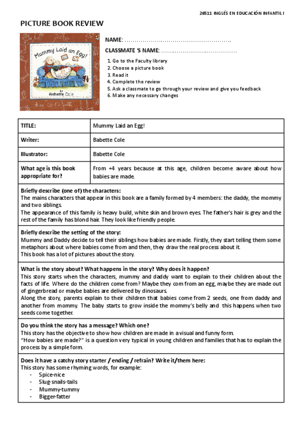 He publicado nuevos ejercicios de 1º Inglés en educación infantil I: Mandatory-Task-Picture-book-review.pdf