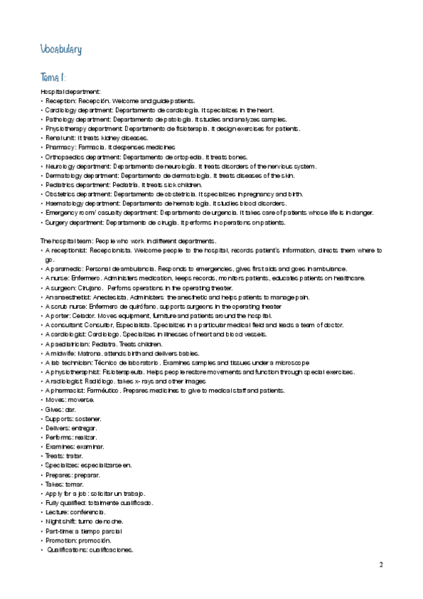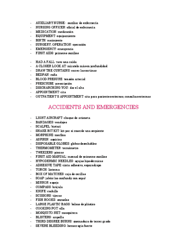 He publicado nuevos apuntes de 1º Inglés Específico: VOCABULARY ENGLISH FOR NURSING