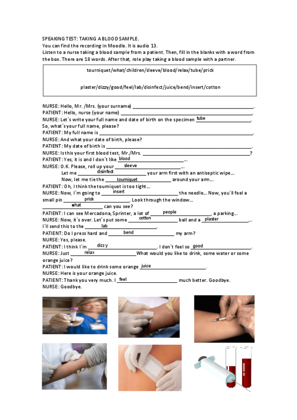He publicado nuevos apuntes de 1º Inglés Específico: SPEAKING-Taking-a-blood-sample.pdf