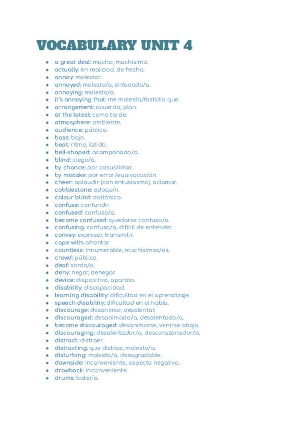 Vocabulario correspondiente a la unidad 4 del libro de Inglés Burlington Skills de 1ºBACH.