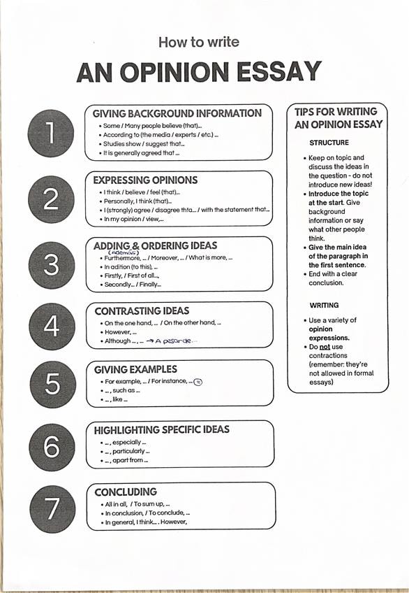 Documento con la estructura y tips para hacer un correcto Writing: a for and against essay.