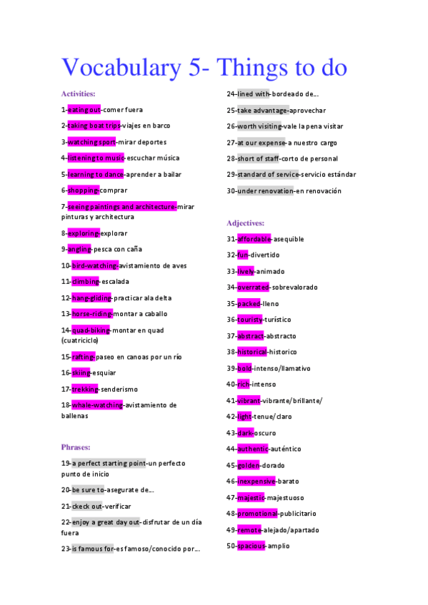 He publicado nuevos apuntes de 2º Inglés I para Turismo: Vocabulary-Unit-5.pdf