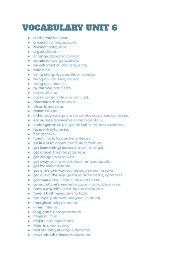 Vocabulario correspondiente a la unidad 6 del libro de Inglés Burlington Skills de 1ºBACH.