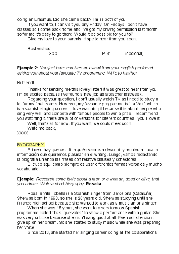 Vocabulario y ejercicios de repaso