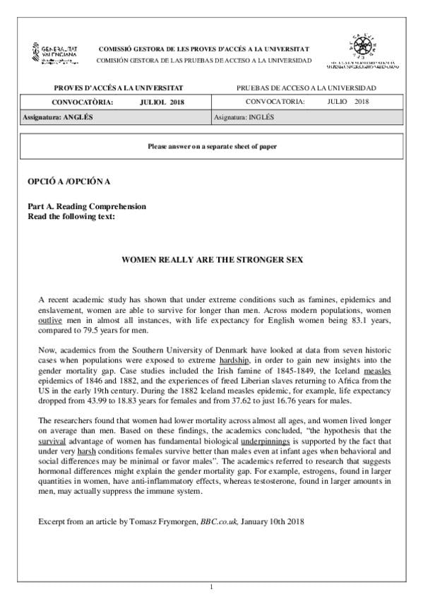 Todos los exámenes de ingles Pau de la Comunidad Valenciana para practicar