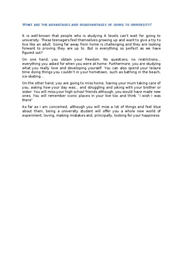 Ejercicios - AdvantagesanddisadvantagesofgoingtouniversityVictoria.docx