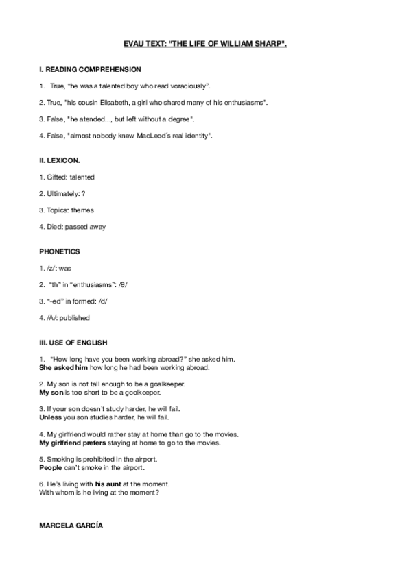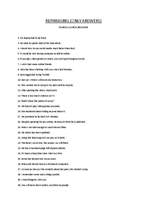 inglés rephrasings y examenes evau