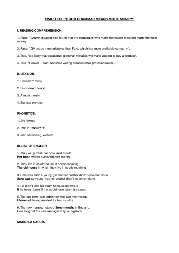 inglés rephrasings y examenes evau