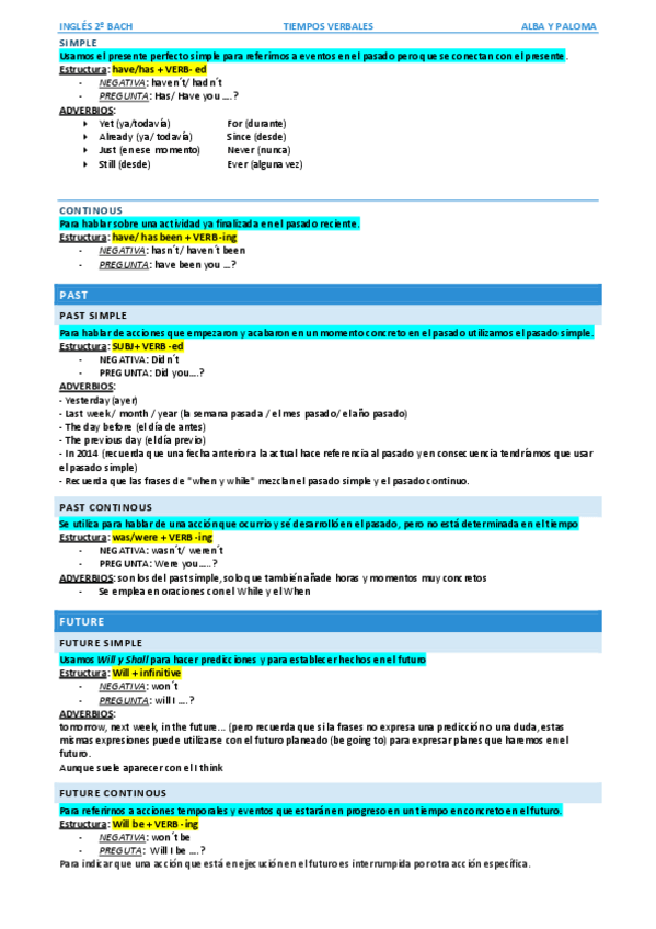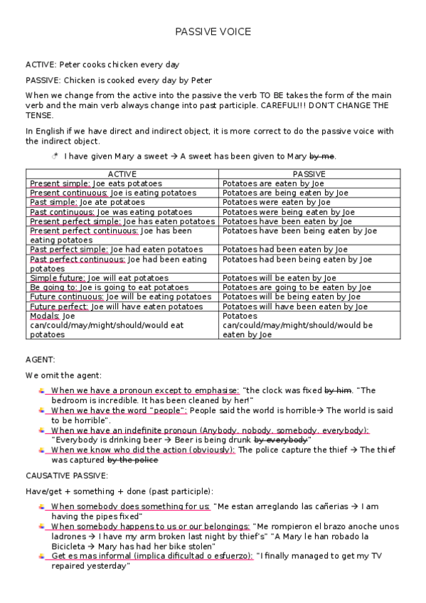 Este documento incluye además apuntes sobre la VOZ PASIVA, los CONDICIONALES, I WISH, MODALES, ...