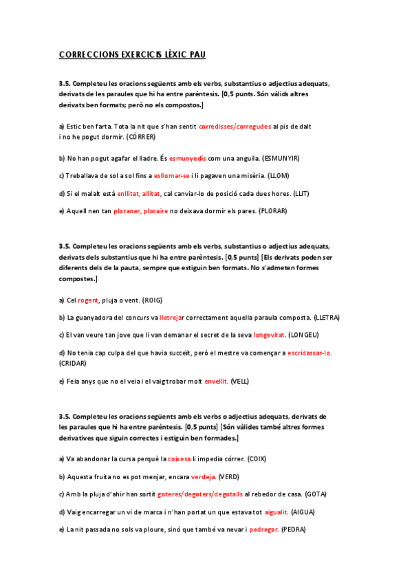 Lengua catalana. Apuntes y ejercicios con corrección