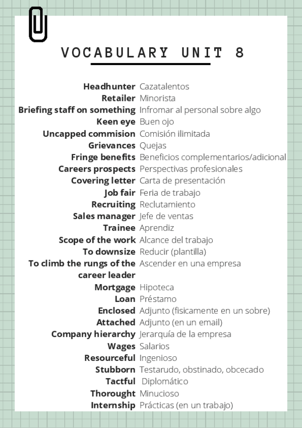 He publicado nuevos apuntes de 4º Inglés III para Turismo: VOCABULARY-UNIT-8.pdf