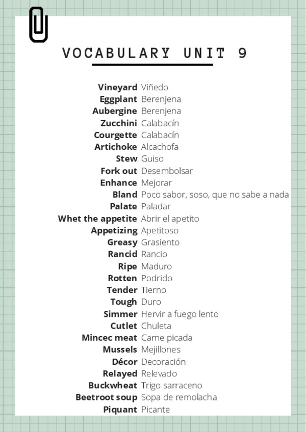 He publicado nuevos apuntes de 4º Inglés III para Turismo: VOCABULARY-UNIT-9.pdf
