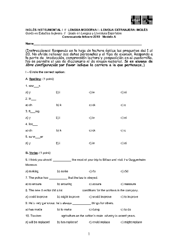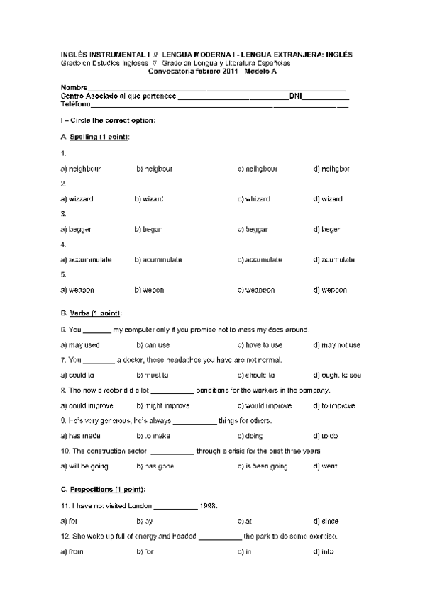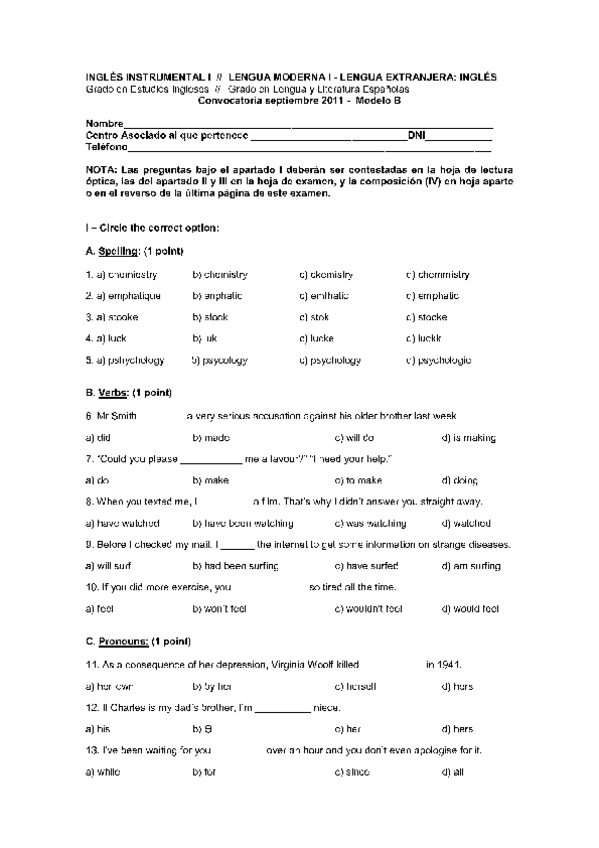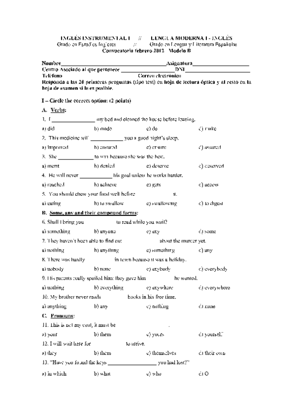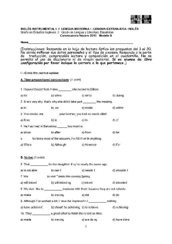 He publicado nuevos examenes de 1º Inglés Instrumental I: INGLES INSTRUMENTAL I