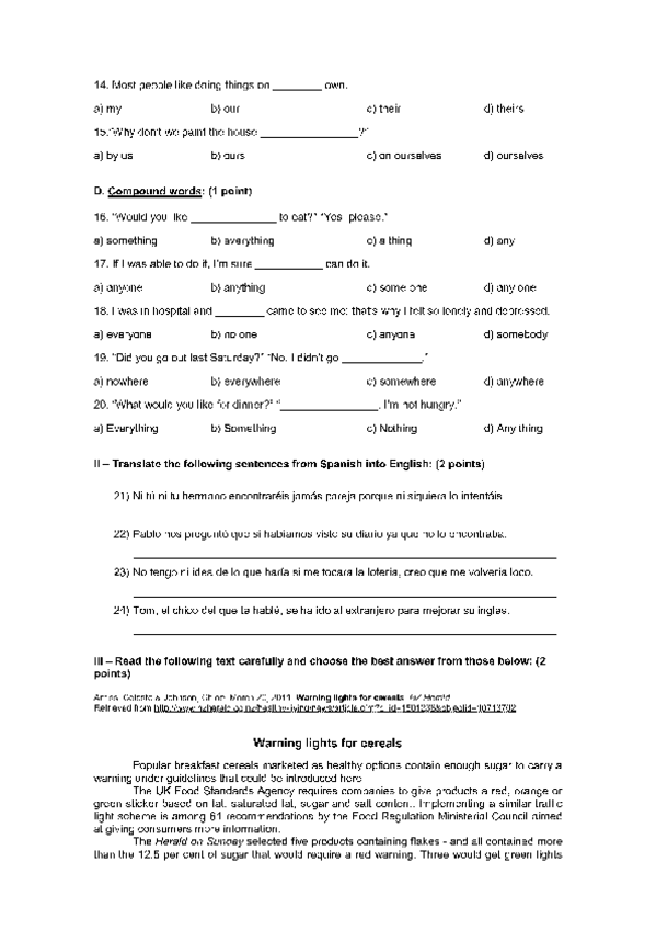 eXAMENES INGLES