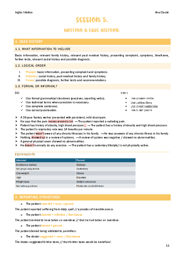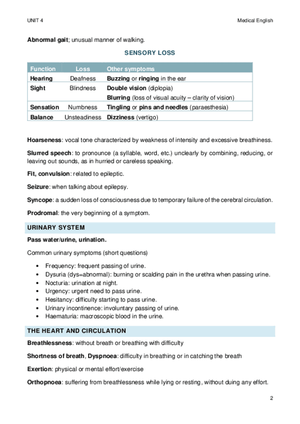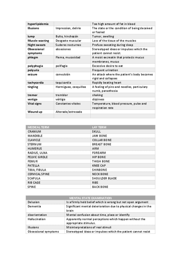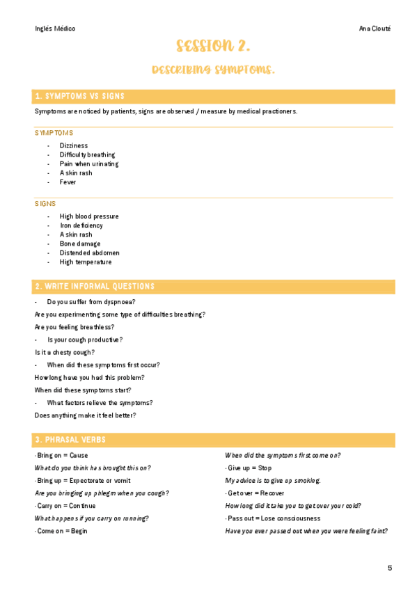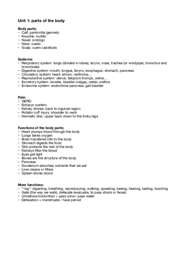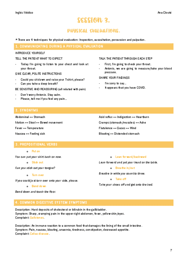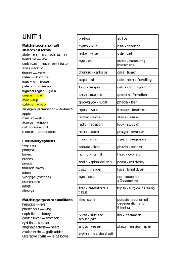 Todo el contenido de inglés médico para el primer cuatri de medicina ucv
