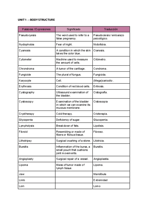 He publicado nuevos apuntes de 1º Inglés Médico: UNIT-4-glossary-medical-english.pdf