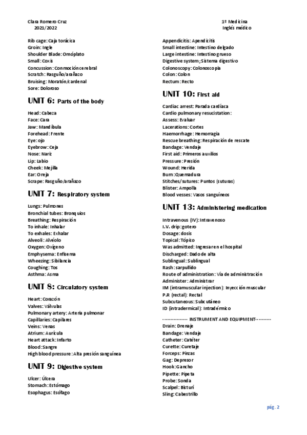 He publicado nuevos apuntes de 2º Inglés Médico: Vocabulario-Revision.pdf