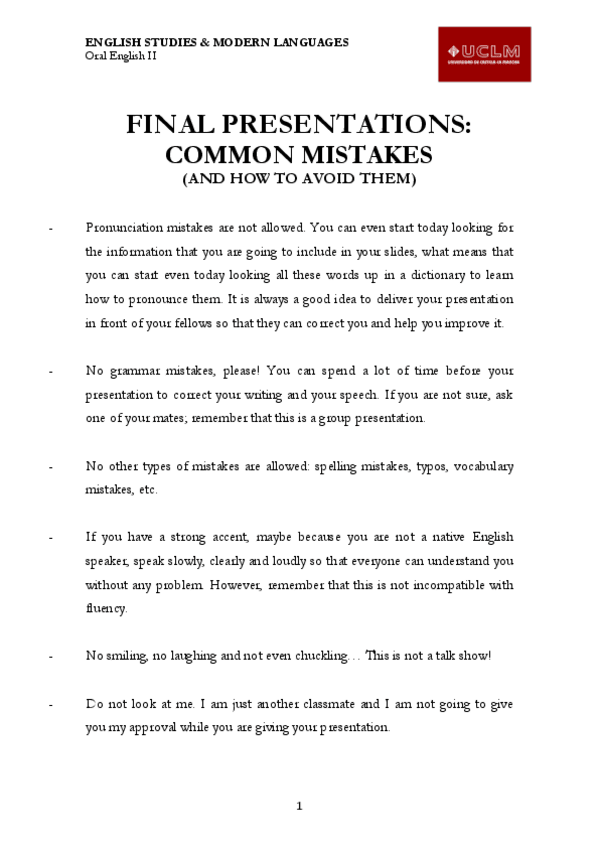 He publicado nuevos apuntes de 1º INGLÉS ORAL II: Common-mistakes-and-how-to-avoid-them.pdf
