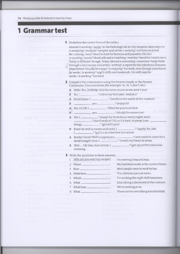 He publicado nuevos examenes de 1º Inglés para Ciencias de la Salud: GRAMMARTEST1.pdf