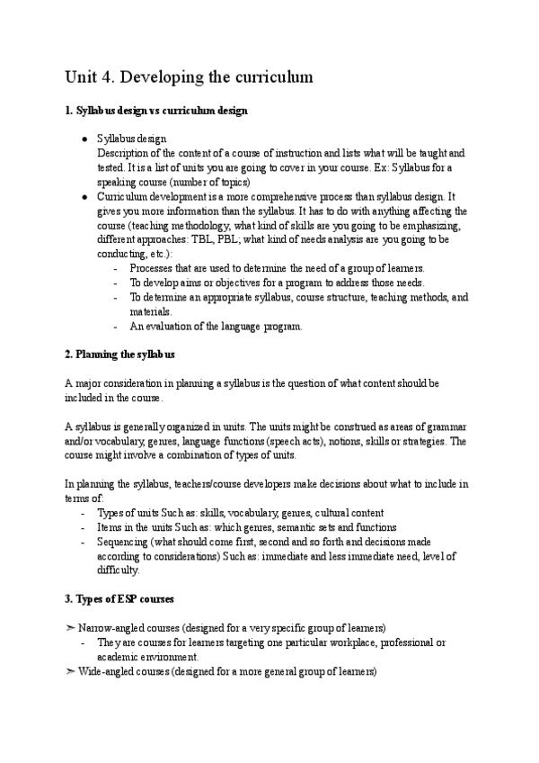 He publicado nuevos apuntes de 3º Inglés para Fines Específicos: Unit-4.-Developing-the-curriculum.pdf