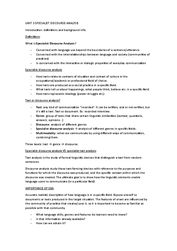 He publicado nuevos apuntes de 3º Inglés para Fines Específicos: UNIT-3-SPECIALIST-DISCOURSE-ANALYSIS.pdf