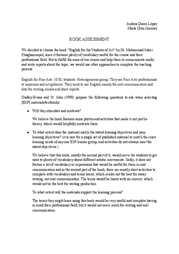 He publicado nuevos trabajos de 3º Inglés para Fines Específicos: Book-Assessment.pdf
