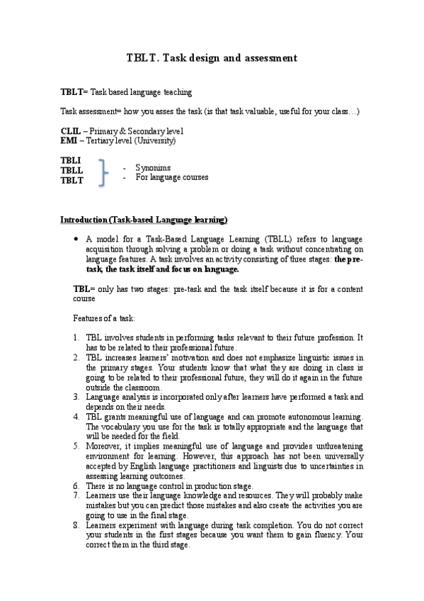 He publicado nuevos apuntes de 3º Inglés para Fines Específicos: TBLT. Task design and assessment (ESP).pdf