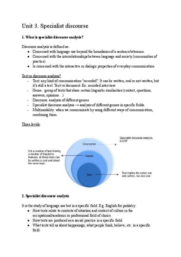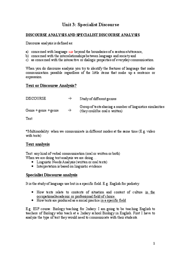 He publicado nuevos apuntes de 3º Inglés para Fines Específicos: UNIT-3-SPECIALIST-DISCOURSE-ANALYSIS.pdf