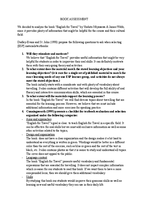 He publicado nuevos trabajos de 3º Inglés para Fines Específicos: Book-Assessment.pdf