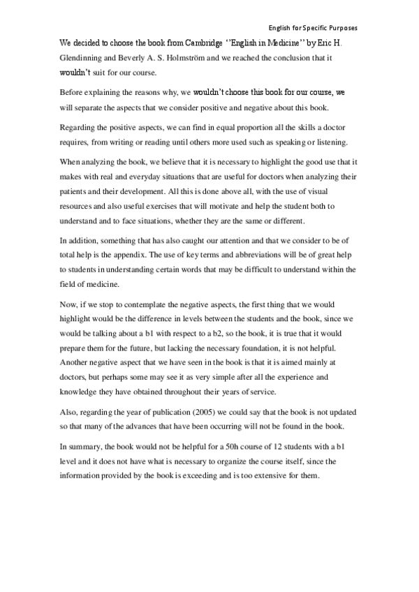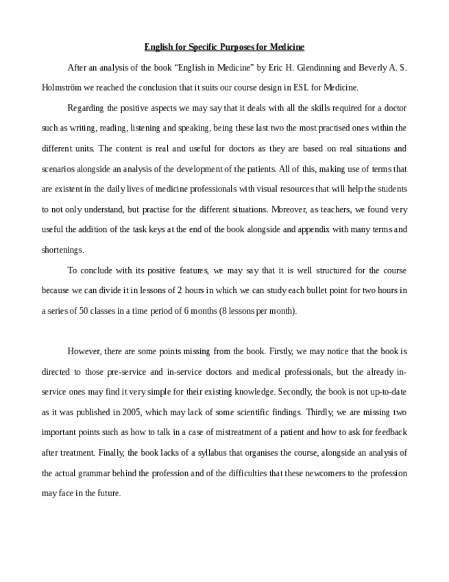 He publicado nuevos apuntes de 3º Inglés para Fines Específicos: ESL-for-Medicine-Wuolah.pdf