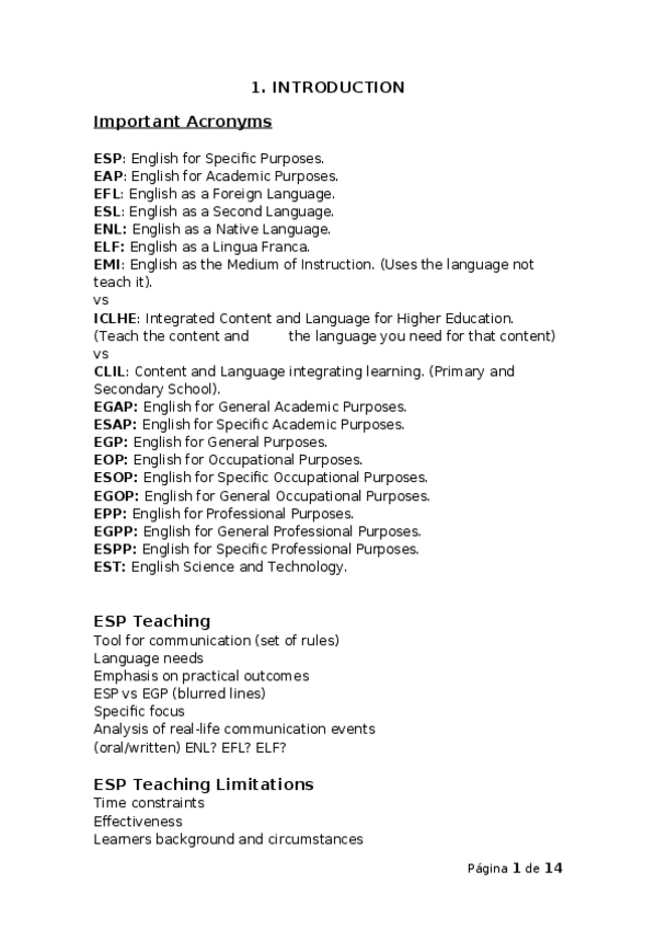Temario - Inglés para Fines Específicos