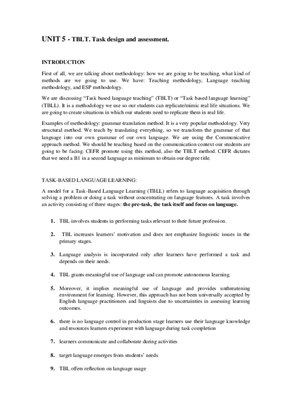 He publicado nuevos apuntes de 3º Inglés para Fines Específicos: Unit-5.-TBLL-and-ESP.-Task-design-and-assesment..pdf