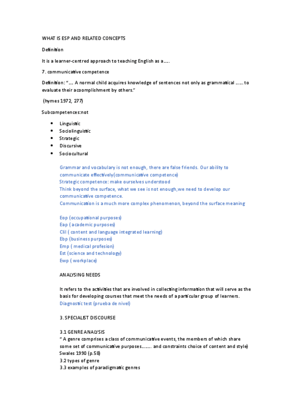 He publicado nuevos examenes de 3º Inglés para Fines Específicos: Definition-Communicative-Competences.pdf