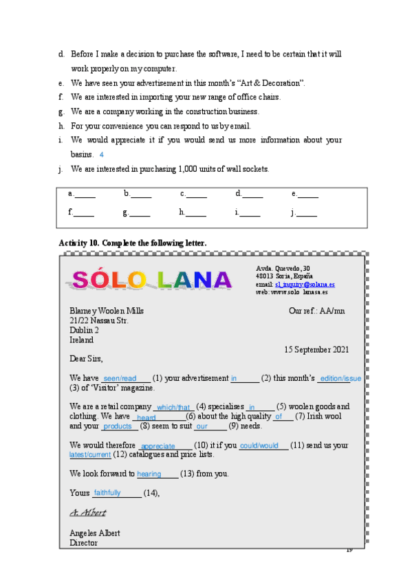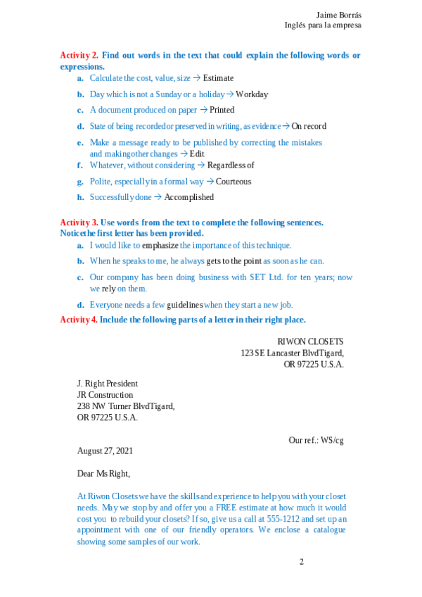 He publicado nuevos ejercicios de 5º Inglés para la Empresa: Unit1Activity4.pdf