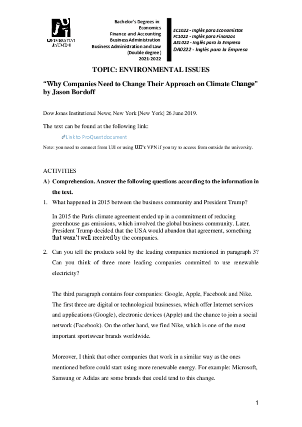 He publicado nuevos ejercicios de 5º Inglés para la Empresa: TEXT1ENVIRONMENT2122.pdf