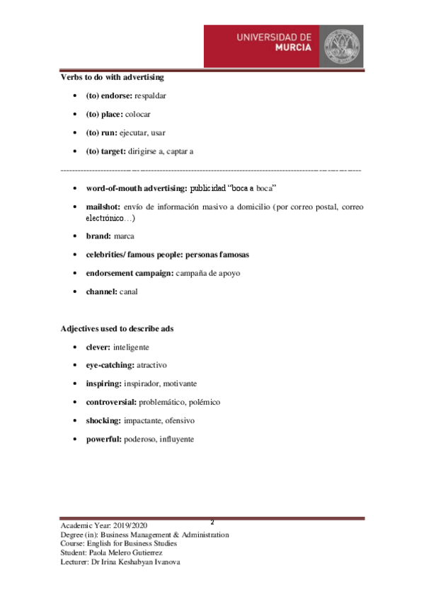 He publicado nuevos apuntes de 4º Inglés para la Empresa: Unit5AdvertisingVocabulary.pdf