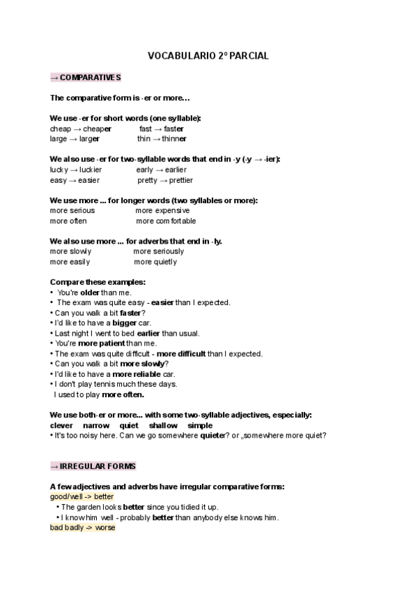 Apuntes vocabulary examen