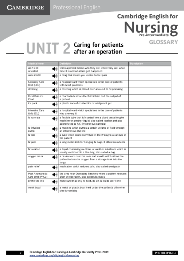 He publicado nuevos apuntes de 2º Inglés sanitario: Glossary-UniDAD-2pdf.pdf