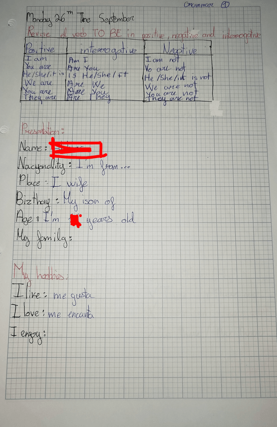 Son apuntes de gramática en inglés sobre el verbo TO BE.
